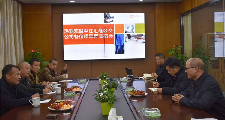 2017年11月30日,湖南省嶽陽市平江彙隆公交公司李董事(shì)長(cháng)帶領該公司部分高層管理人員莅臨我司參觀、交流。在我司領導的陪同下,大家參觀了公司的辦公環境、近距離了解員工的工作模式、閱讀了智慧暢行的各類宣傳資料,對(duì)智慧暢行的寬敞、舒适的辦公環境、以及員工積極、活躍的工作場景贊不絕口。