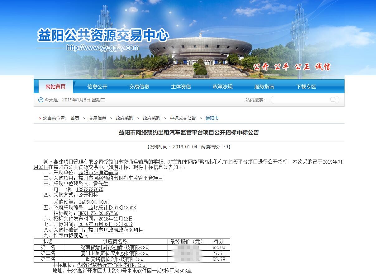 2019年1月4日,智慧暢行成(chéng)功中标益陽市網絡預約出租汽車監管平台項目。這(zhè)是我司繼智慧公交調度系統、交通一卡通平台、支付寶掃碼乘車項目後(hòu)與益陽市交通運輸局的又一次合作,也标志着我司在交通出行服務領域有了更大的應用發(fā)展及更爲廣闊的市場前景。